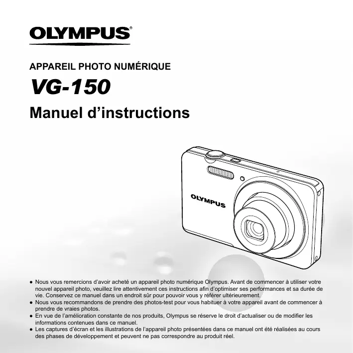 - Nous vous remercions d'avoir acheté un apparéil photo numérique Olympus. Avant de commencer à utiliser votre nouvel apparéil photo, veuillez tire attentivement ces instructions afin d'optimiser ses performances et sa durée de vie. Conservez ce manuel dans un endroit sur pour pouvoir vous y référer ultérieurement.