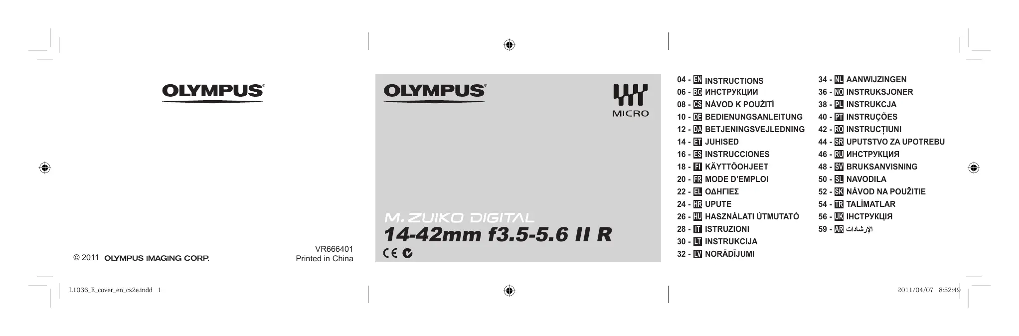 Téléchargez la notice de votre Objectif photo au format PDF gratuitement ! Retrouvez votre notice M.ZUIKO DIGITAL 14 - OLYMPUS et reprennez votre appareil électronique en main. Sur cette page sont publiés tous les documents nécessaires à l'utilisation de votre appareil M.ZUIKO DIGITAL 14 de la marque OLYMPUS.