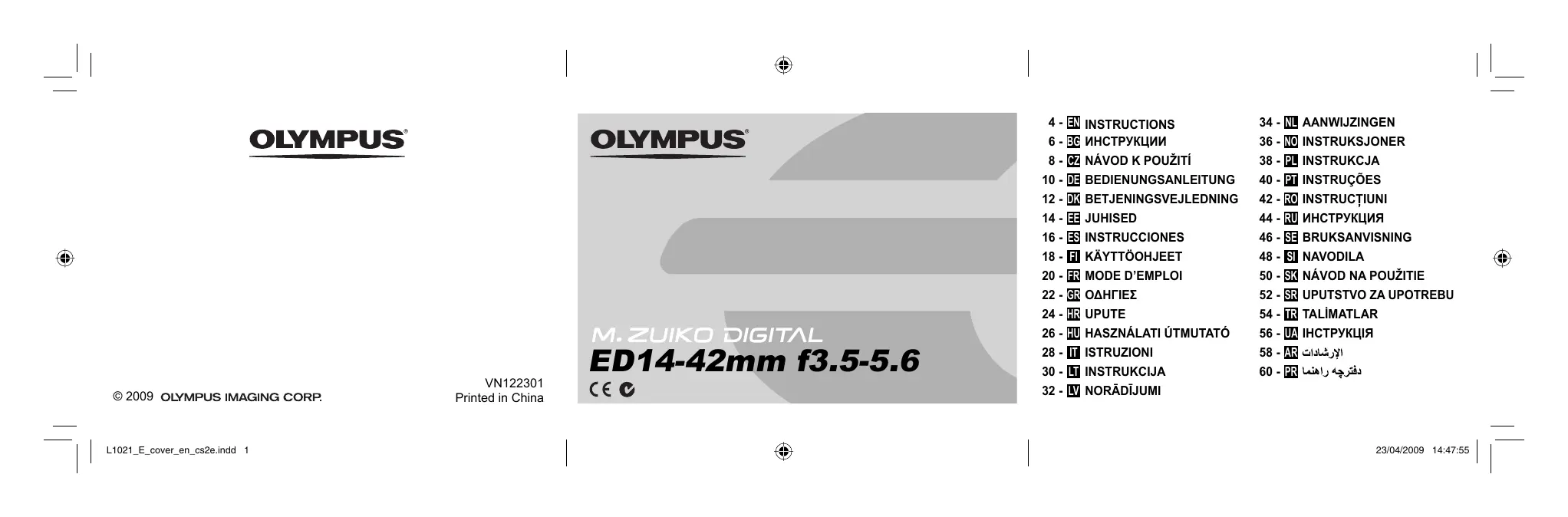 MODE D'EMPLOI M.ZUIKO DIGITAL ED 14 OLYMPUS