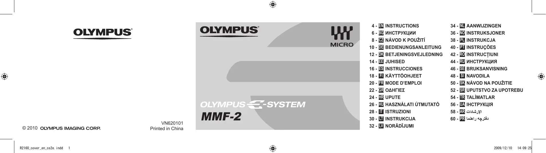 MMF-2 - Adaptateur d'objectif OLYMPUS - Notice d'utilisation et mode d'emploi gratuit