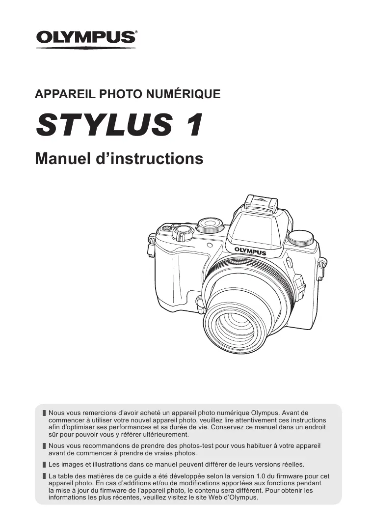 STYLUS 1 - Appareil photo numérique OLYMPUS - Notice d'utilisation et mode d'emploi gratuit