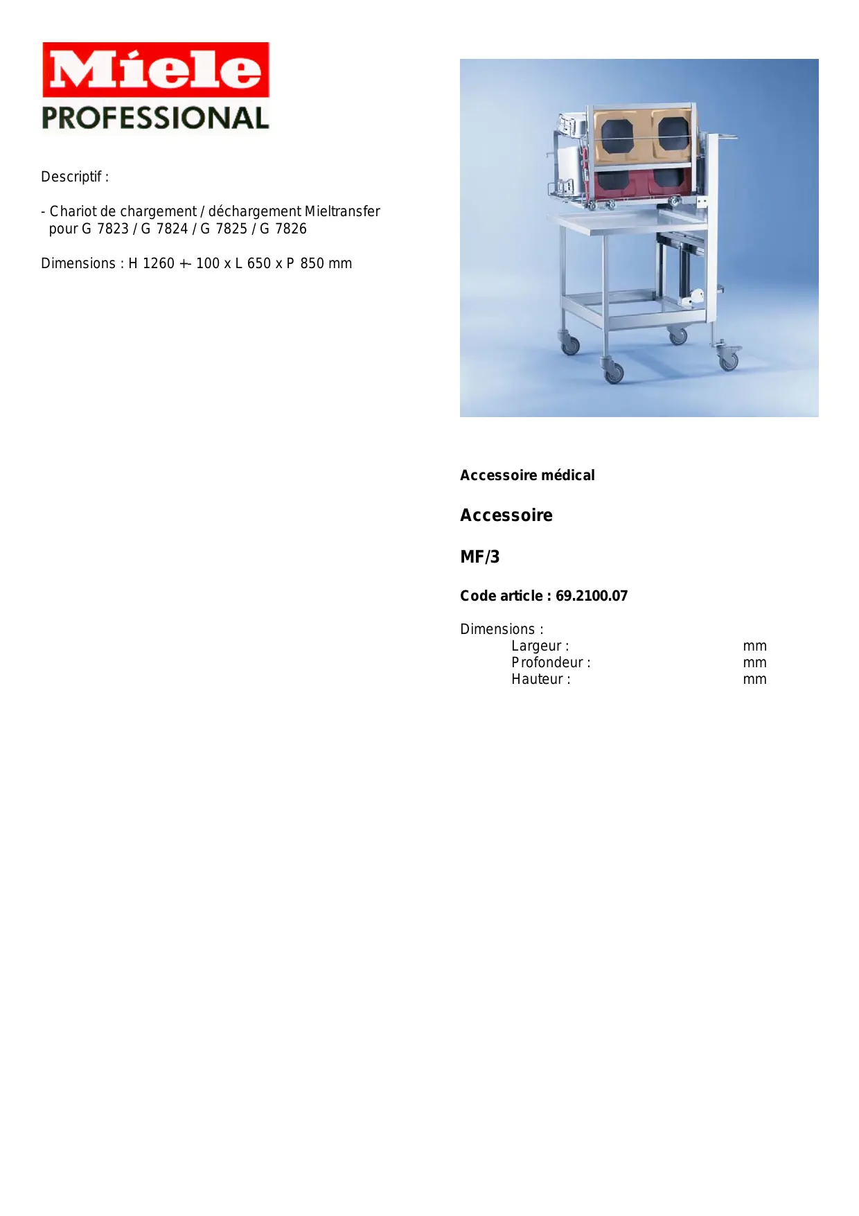 MF-3 DESCRIPTIF - Chariot médical MIELE - Notice d'utilisation et mode d'emploi gratuit
