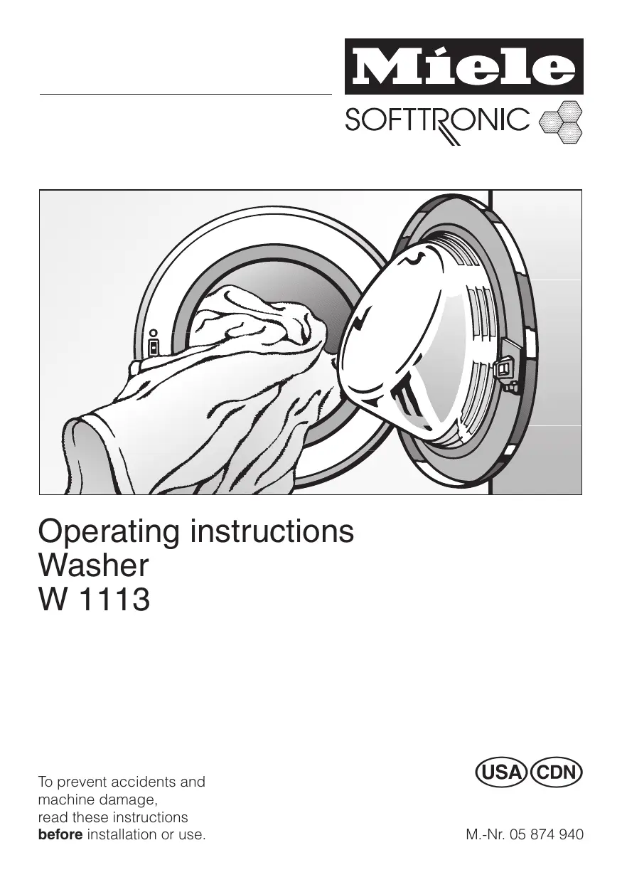 Retrouvez gratuitement la notice de l'appareil W 1113 MIELE au format PDF.