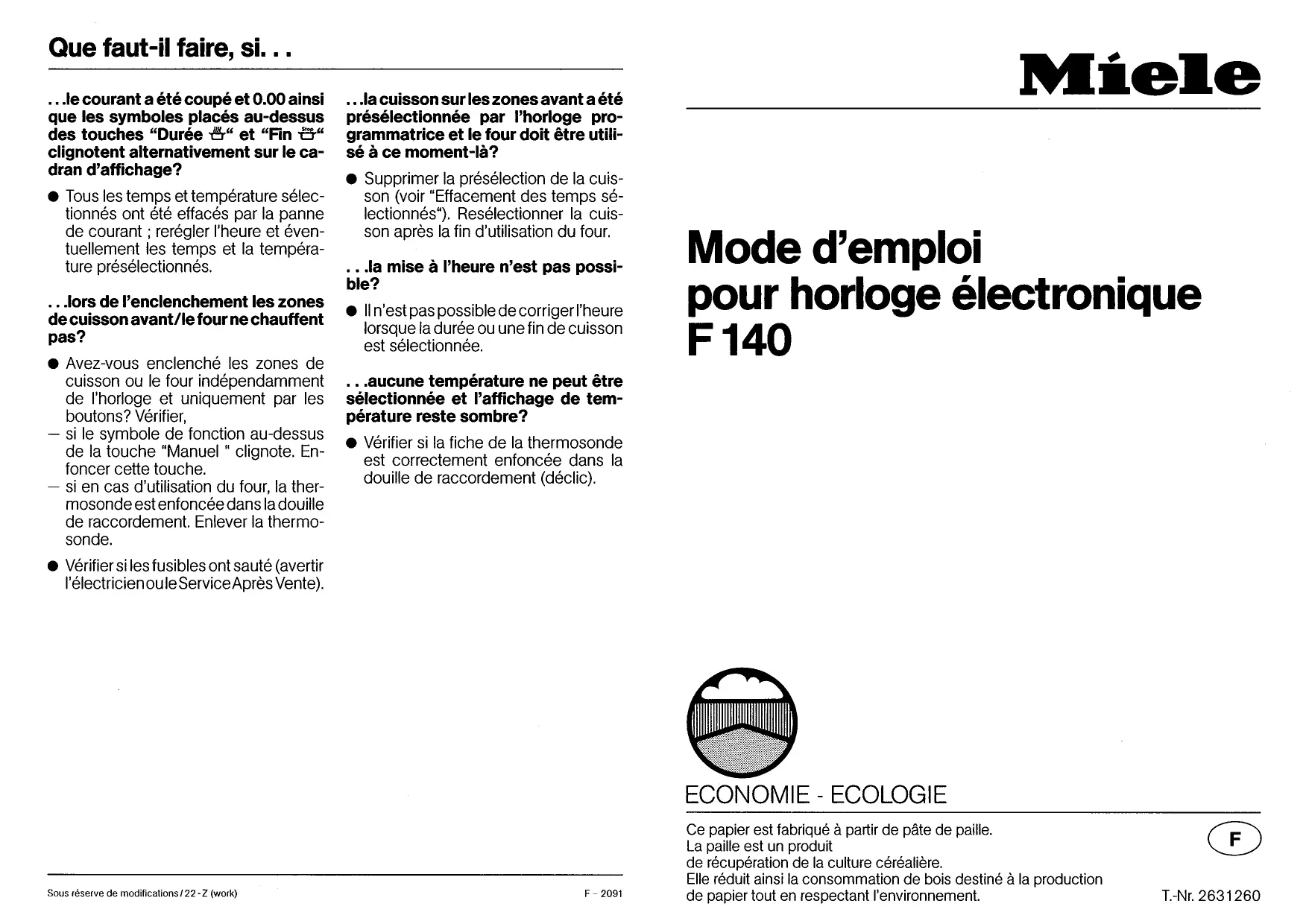 TIMER F140 - Four horloge électronique MIELE - Notice d'utilisation et mode d'emploi gratuit