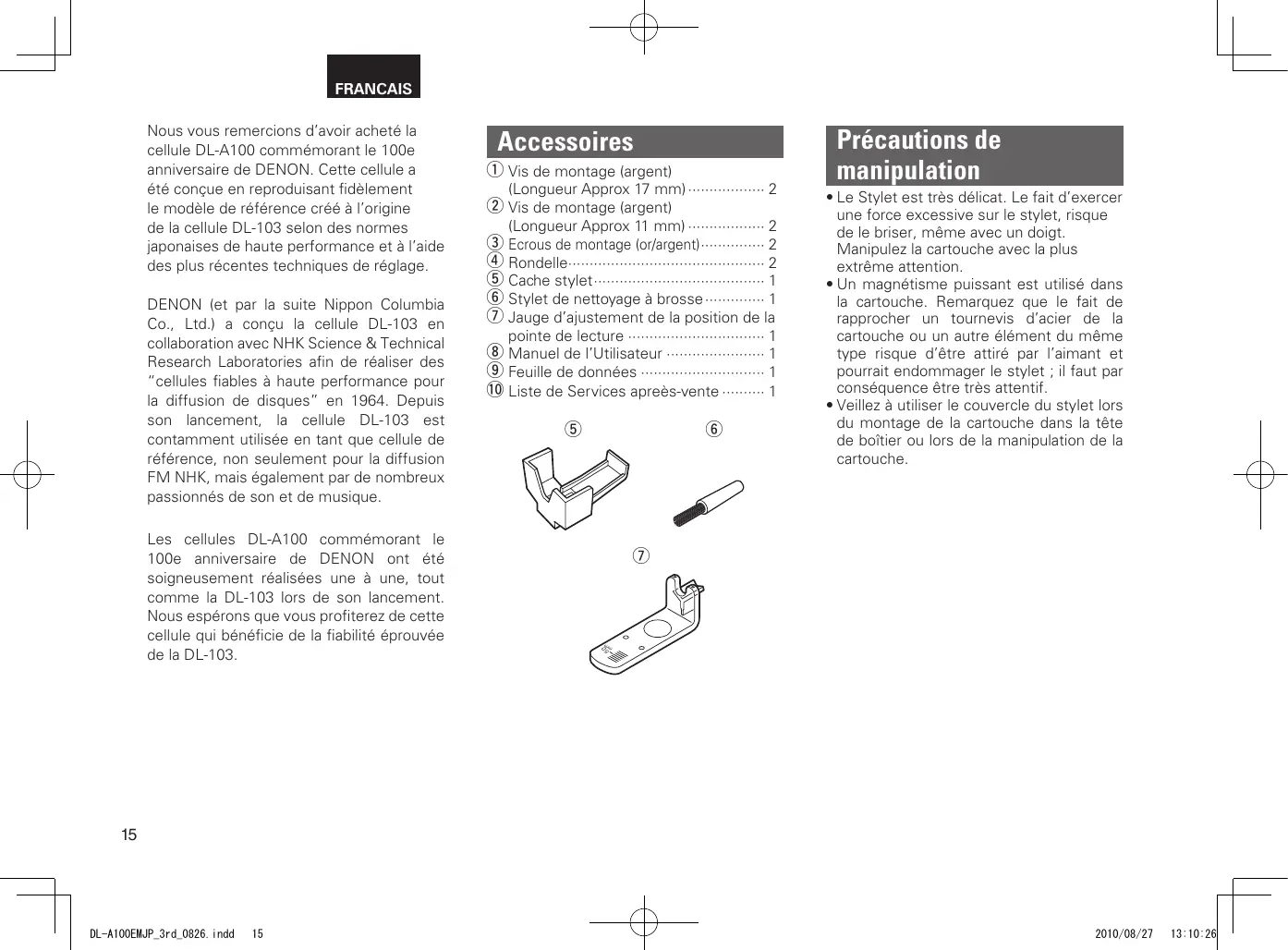 DL-A100 - Cellule phonographique DENON - Notice d'utilisation et mode d'emploi gratuit