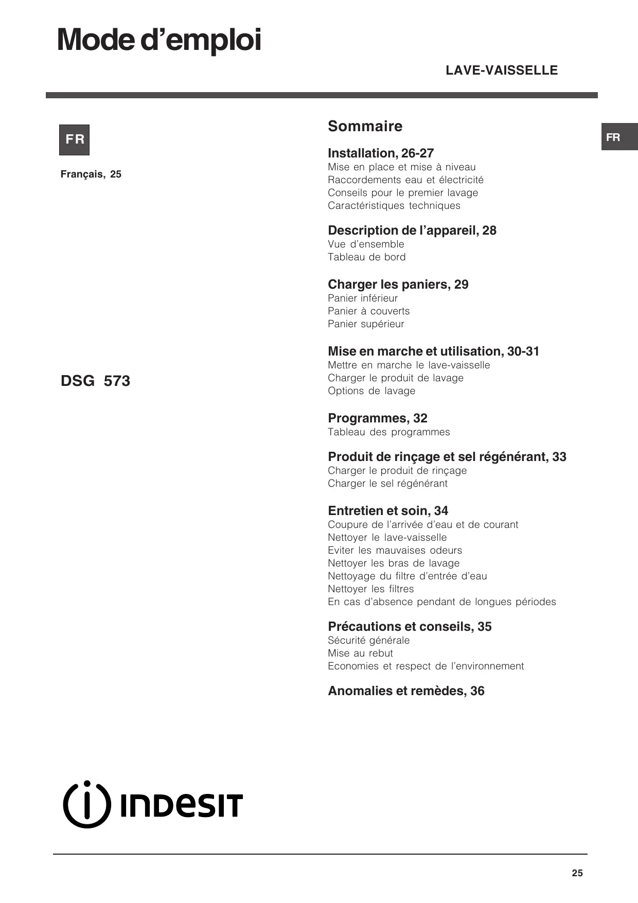 MODE D'EMPLOI DSG573NX INDESIT