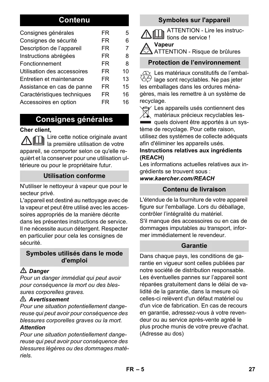 www.kaercher.com/REACH Contenu de livraison