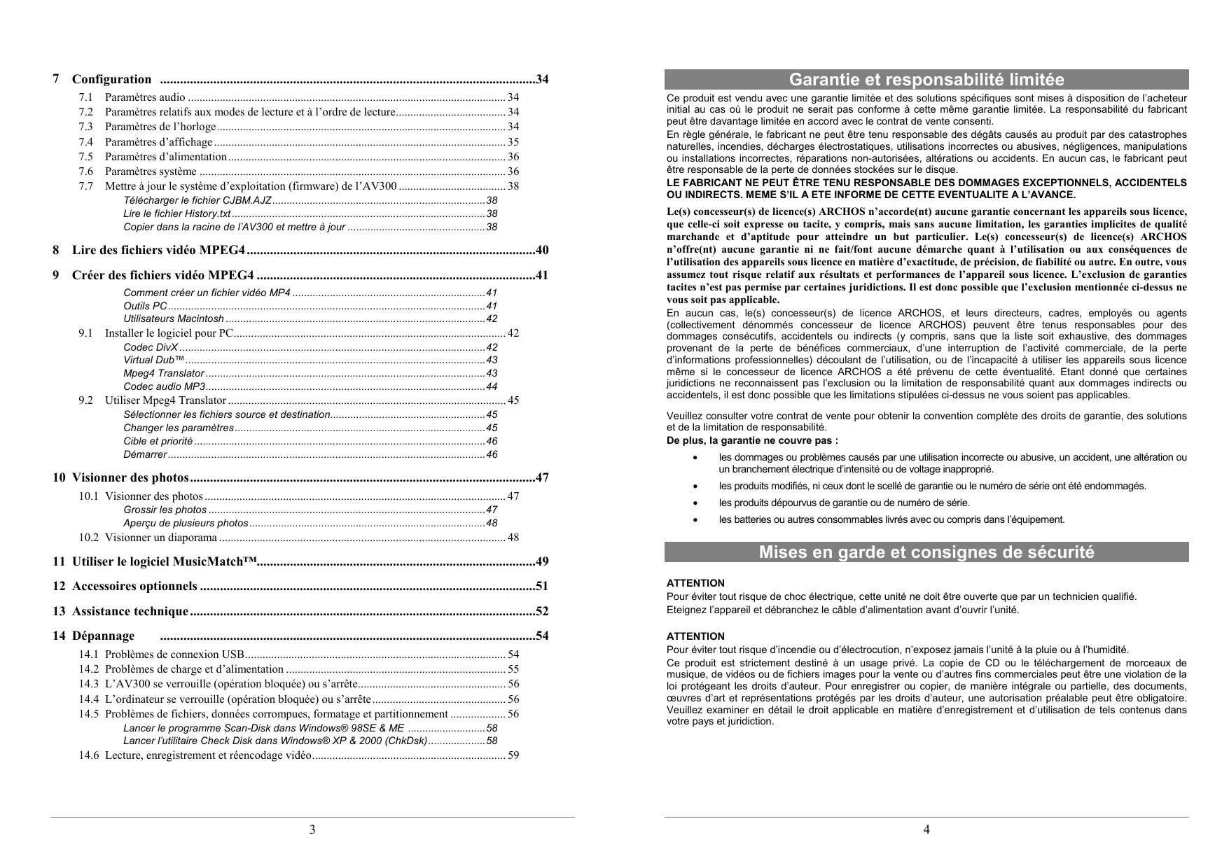 Manuel d'utilisation pour les VIDEO AV320 & AV340 d'ARCHOS version 1.1