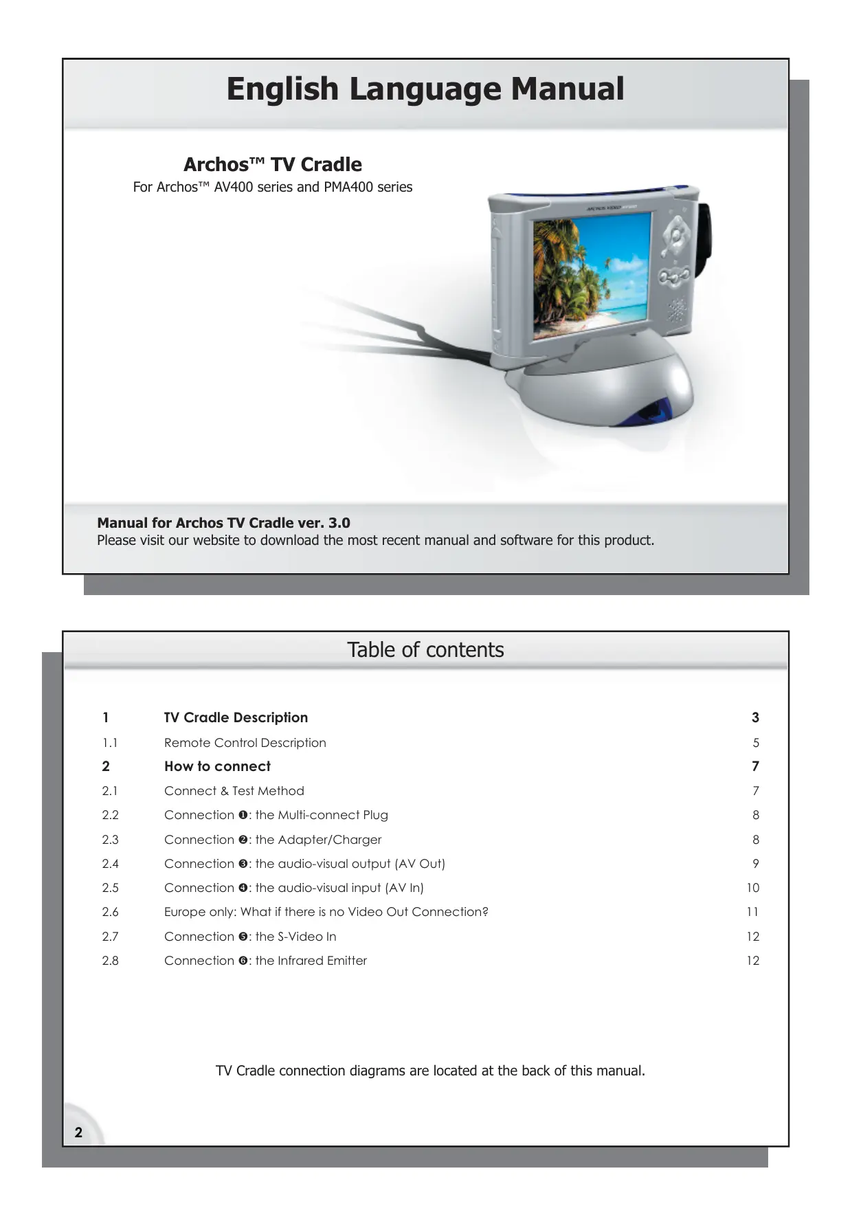 Retrouvez gratuitement la notice de l'appareil AV400/PMA400 TV CRADLE ARCHOS au format PDF.