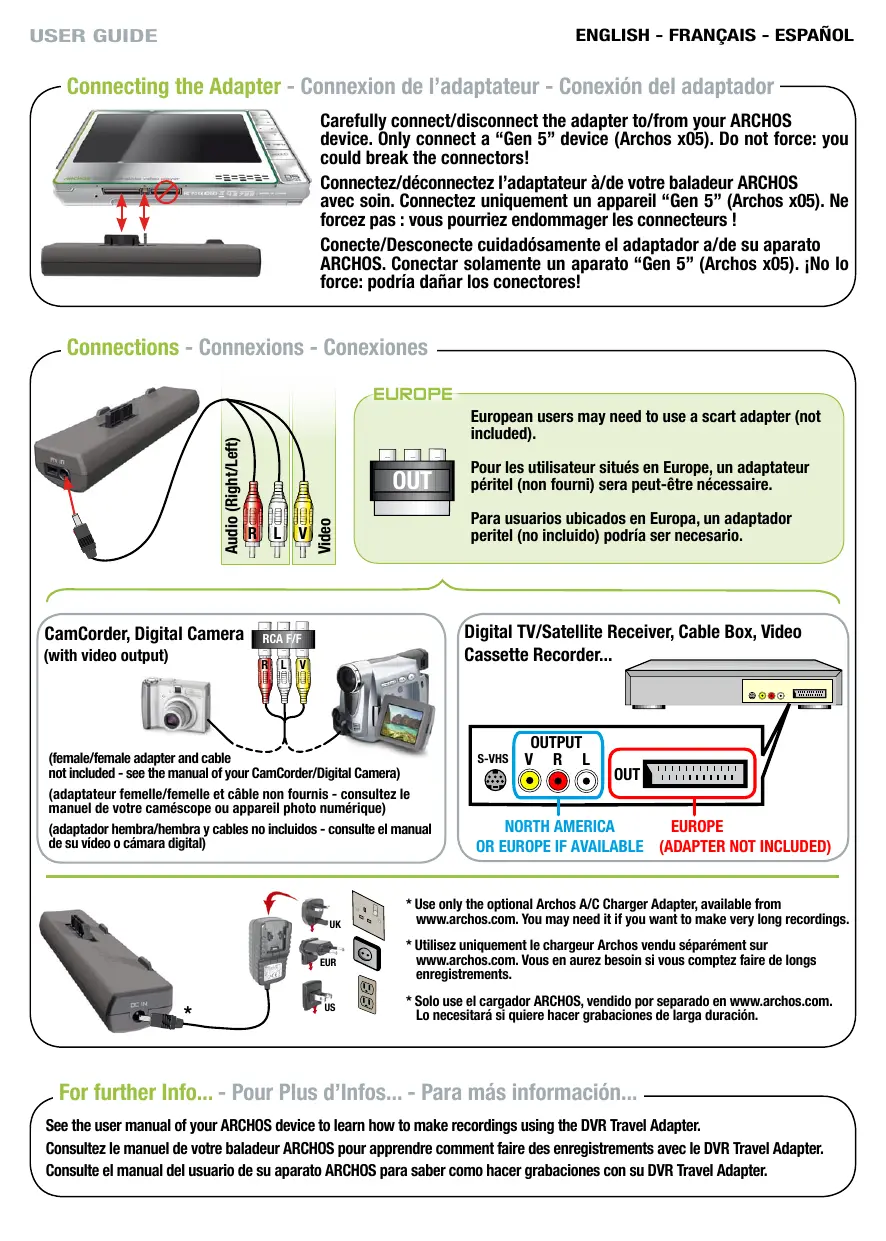 Retrouvez gratuitement la notice de l'appareil TRAVEL ADAPTER GEN5 ARCHOS au format PDF.