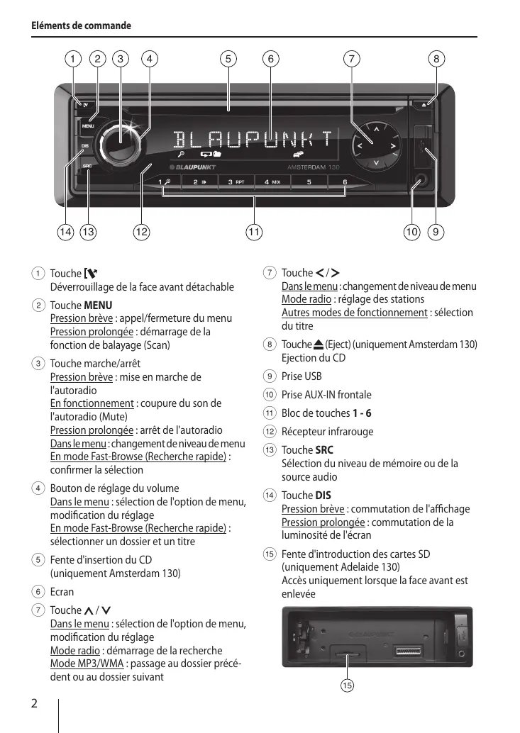 AMSTERDAM 130 - Autoradio BLAUPUNKT - Notice d'utilisation et mode d'emploi gratuit