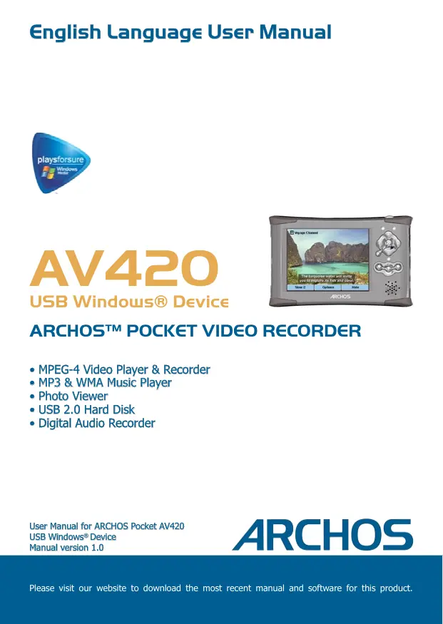 AV420 - Lecteur multimédia ARCHOS - Notice d'utilisation et mode d'emploi gratuit