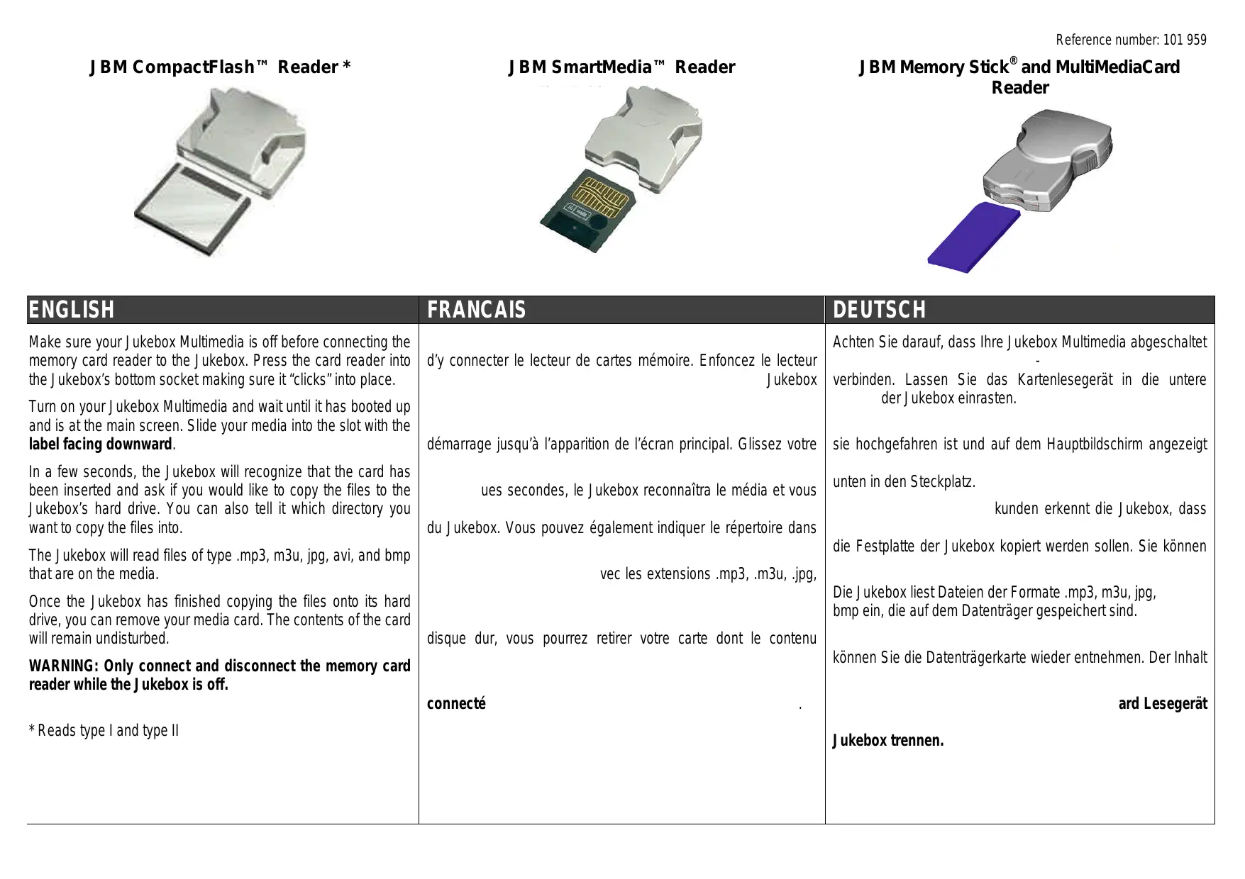 MEMORY CARD READERS - Lecteurs de cartes mémoire ARCHOS - Notice d'utilisation et mode d'emploi gratuit