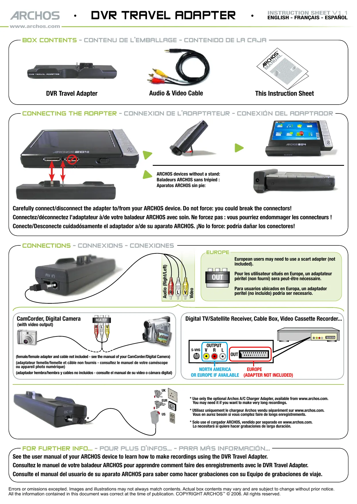 Retrouvez gratuitement la notice de l'appareil TRAVEL ADAPTER GEN4 ARCHOS au format PDF.
