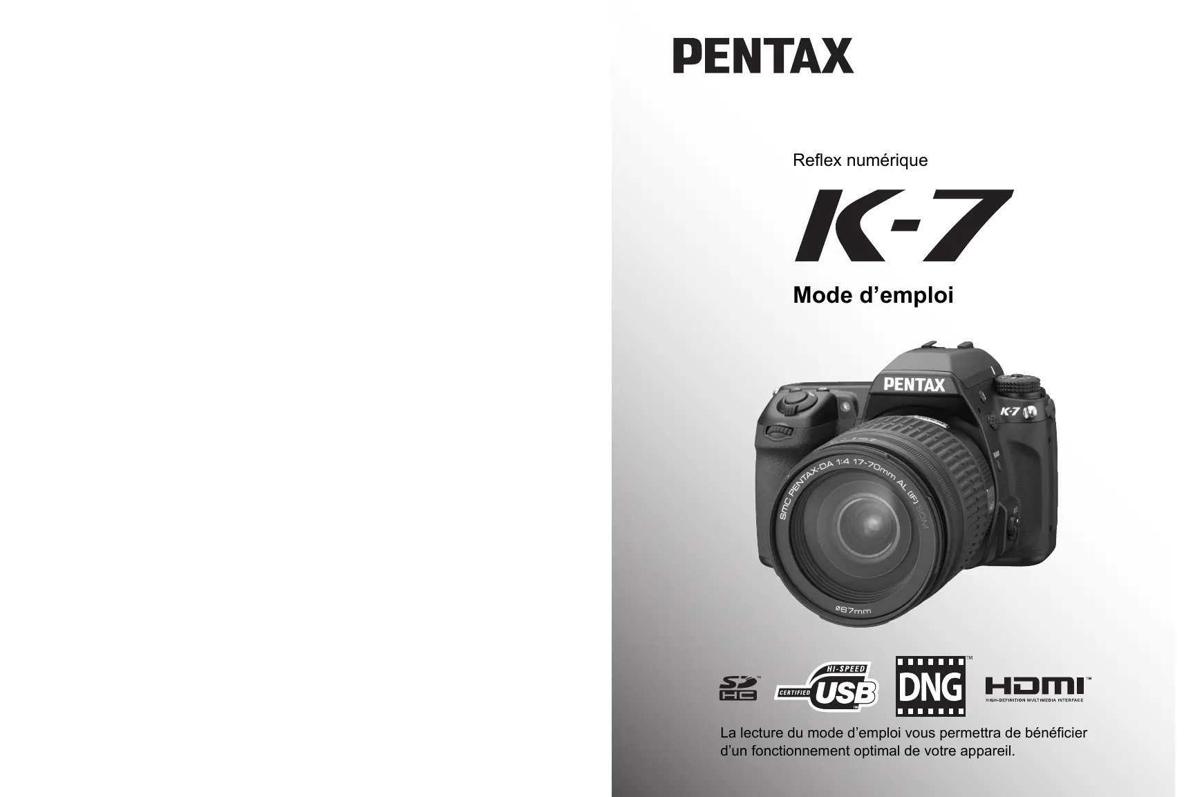 Retrouvez gratuitement la notice de l'appareil K-7 PENTAX au format PDF.