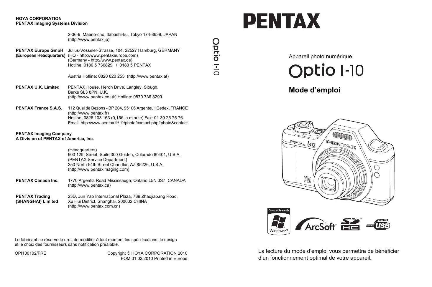 Retrouvez gratuitement la notice de l'appareil OPTIO I-10 PENTAX au format PDF.