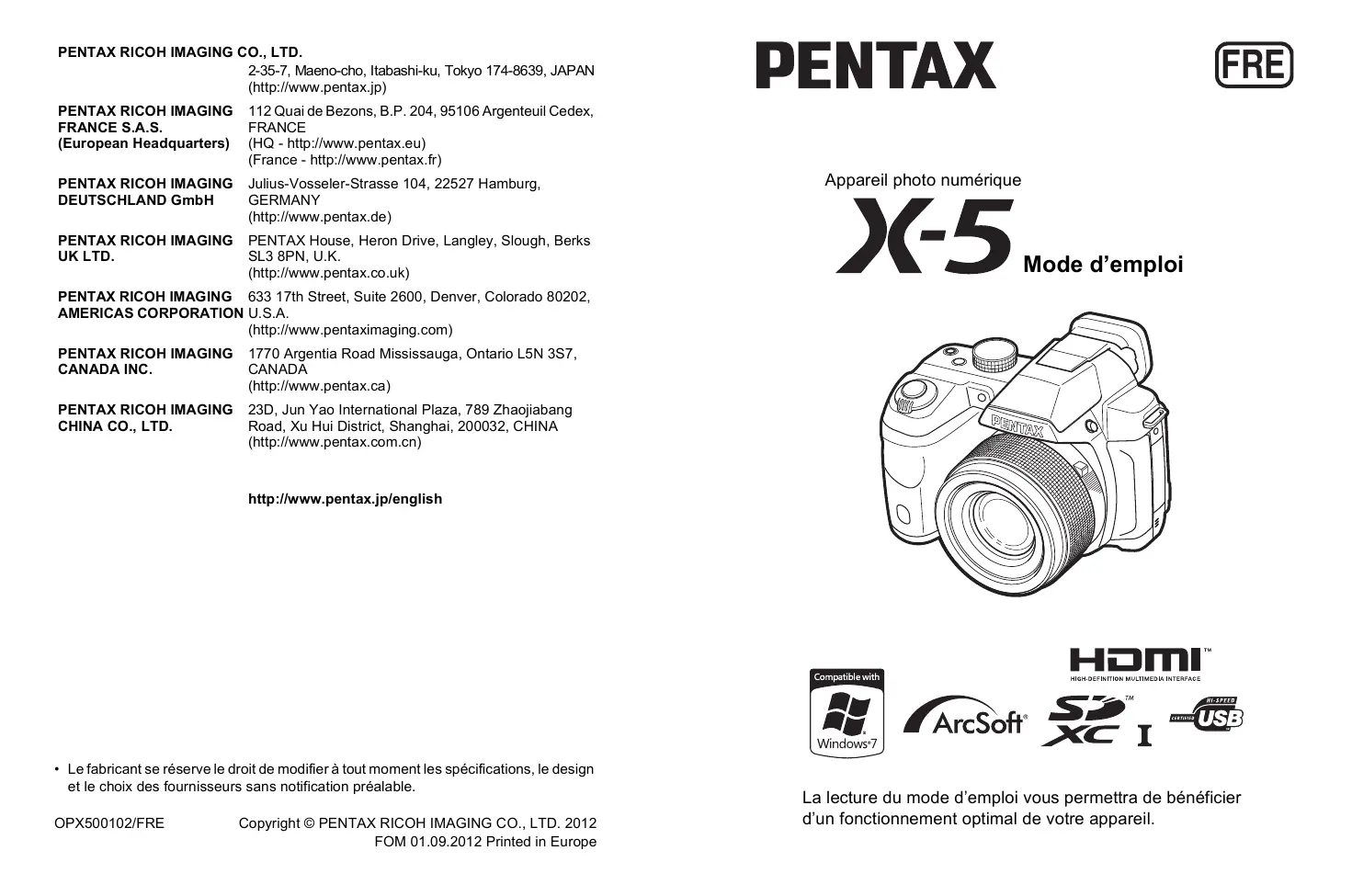 X5 - Appareil photo numérique PENTAX - Notice d'utilisation et mode d'emploi gratuit