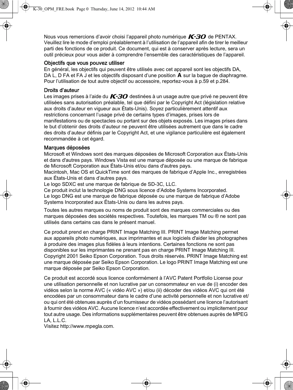 K-30_OPM_FRE.book Page 1 Thursday, June 14, 2012 10:44 AM