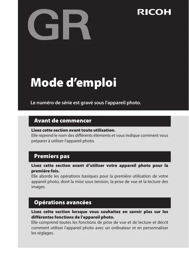 MODE D'EMPLOI GR RICOH