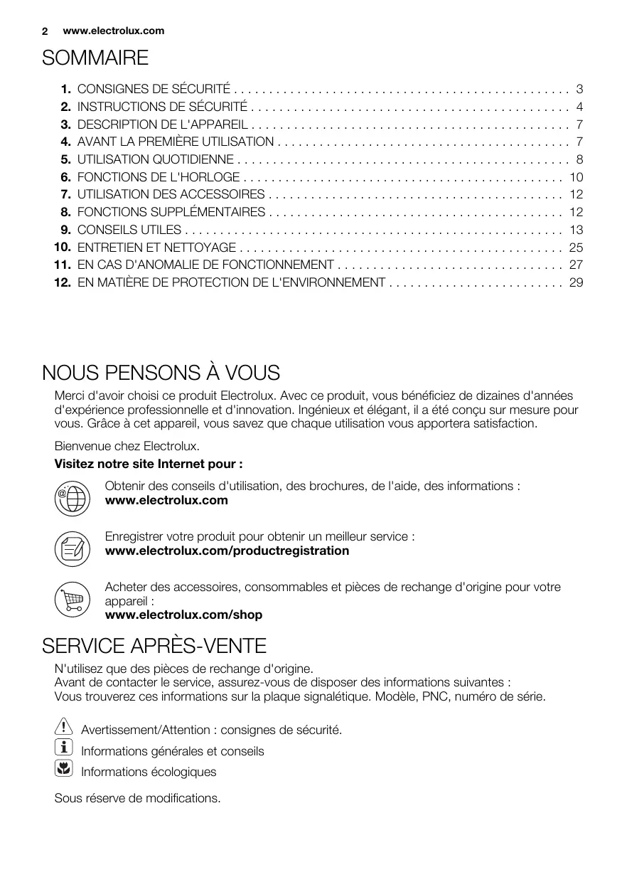 Merci d'avoir choisi ce produit Electrolux. Avec ce produit, vous bénéficiez de dizaines d'années d'expérience professionnelle et d'innovation. Ingénieux et élégant, il a été conçu sur mesure pour vous. Grâce à cet appareil, vous savez que chaque utilisation vous apportera satisfaction.
