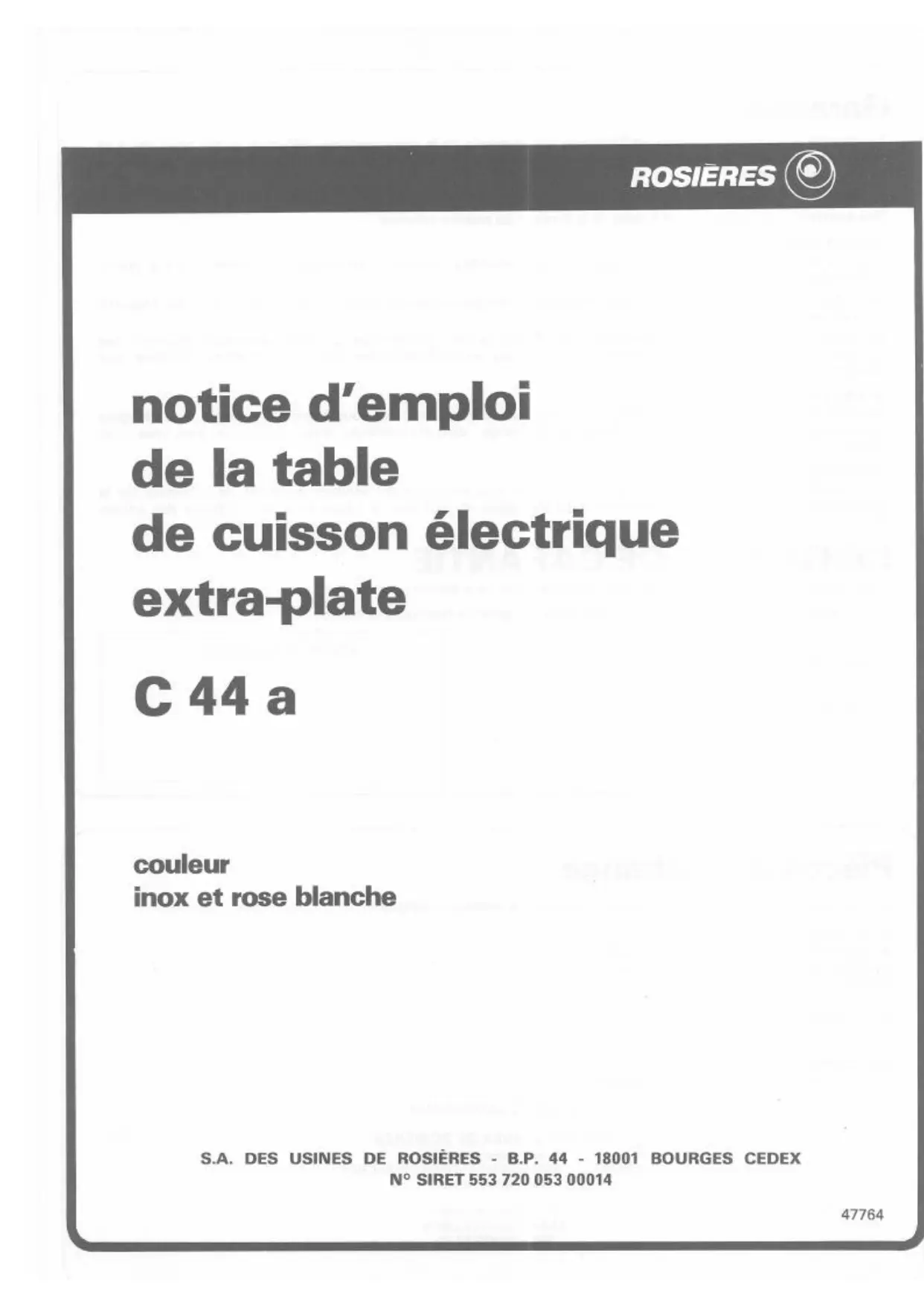 Retrouvez gratuitement la notice de l'appareil C 44 A ROSIERES au format PDF.