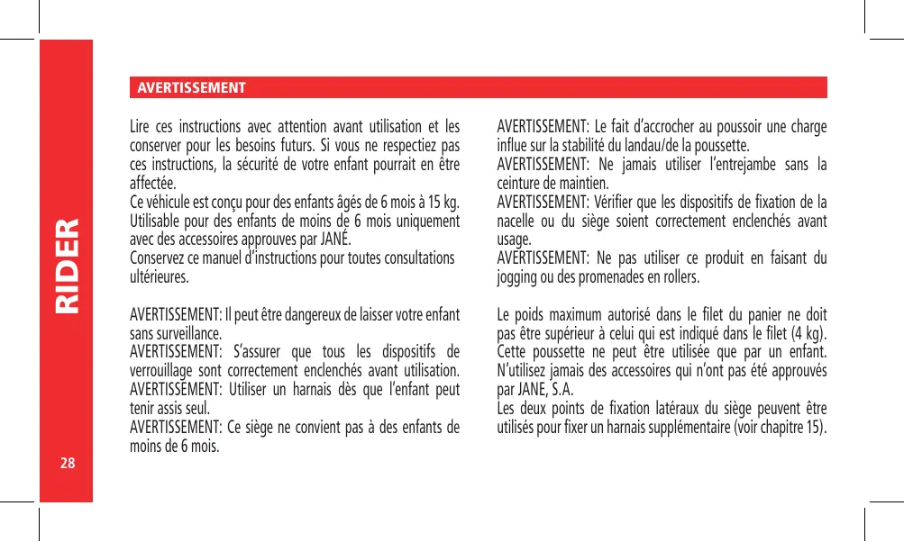 RIDER - Poussette JANE - Notice d'utilisation et mode d'emploi gratuit
