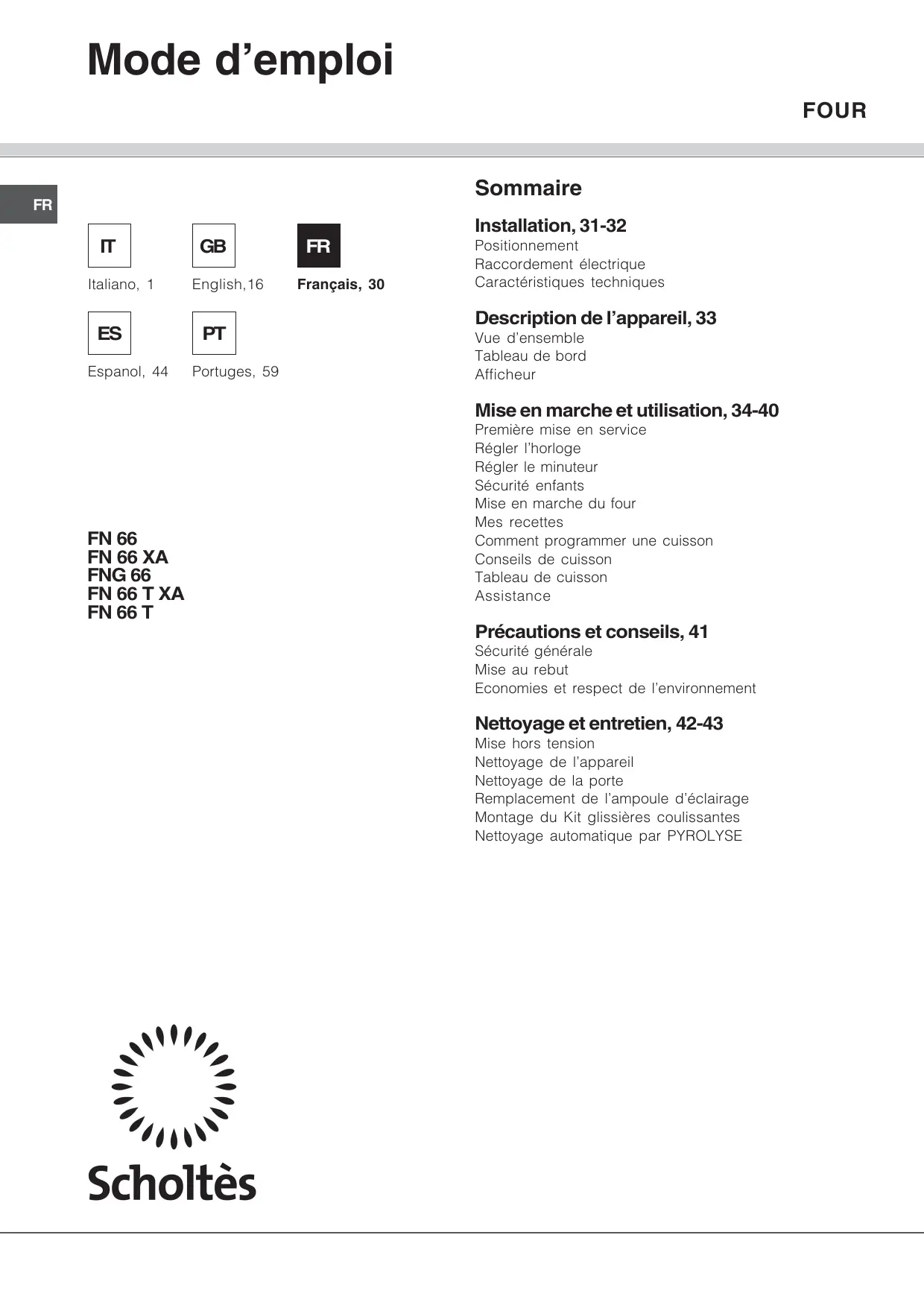 Retrouvez gratuitement la notice de l'appareil FN 66 XA SCHOLTES au format PDF.