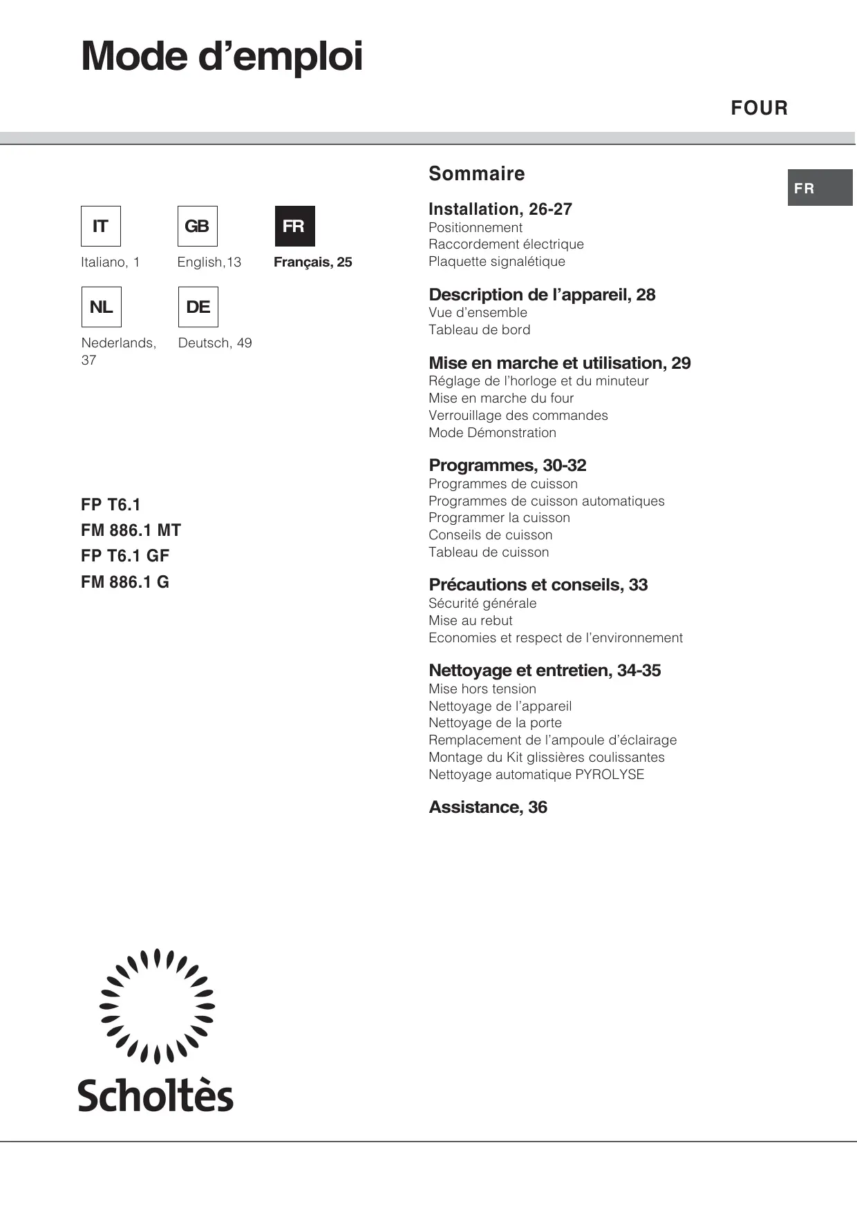 FM 886.1 G - Four SCHOLTES - Notice d'utilisation et mode d'emploi gratuit