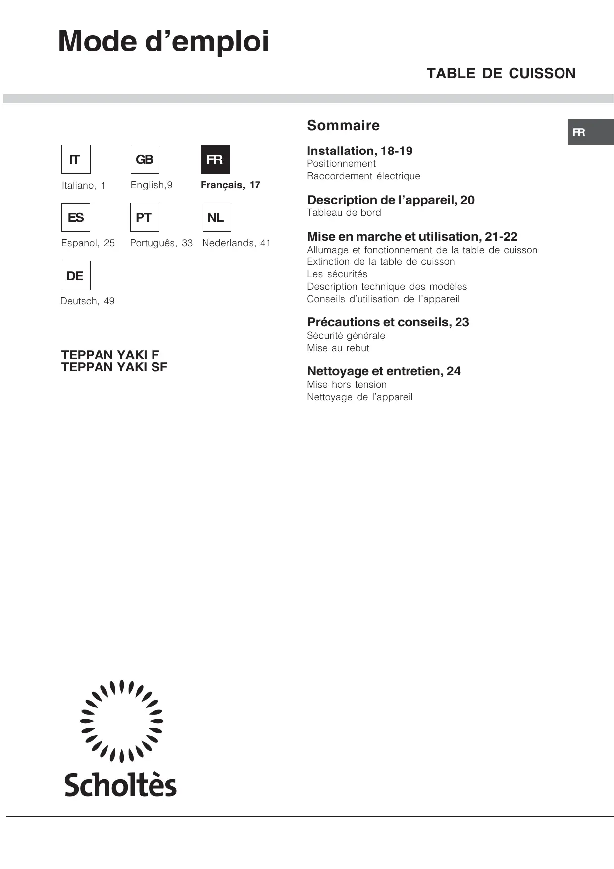 TEPPAN YAKI SF - Plaque de cuisson SCHOLTES - Notice d'utilisation et mode d'emploi gratuit