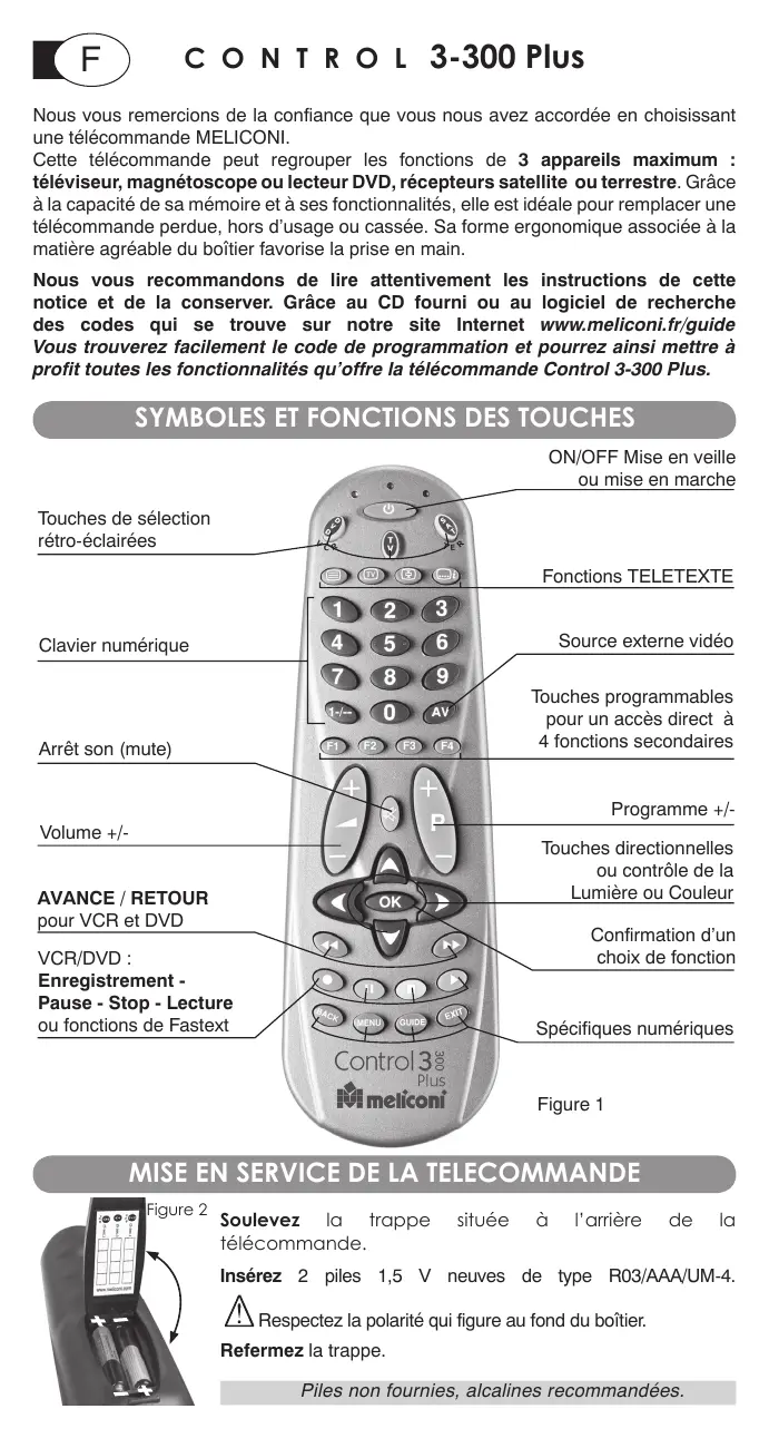 CONTROL 3-300 PLUS - Télécommande universelle MELICONI - Notice d'utilisation et mode d'emploi gratuit
