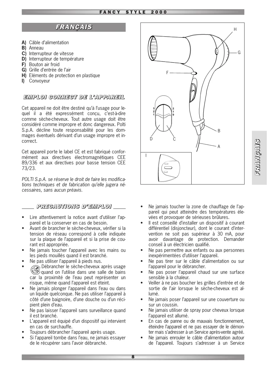 FANCY STYLE 2000 - Sèche cheveux POLTI - Notice d'utilisation et mode d'emploi gratuit