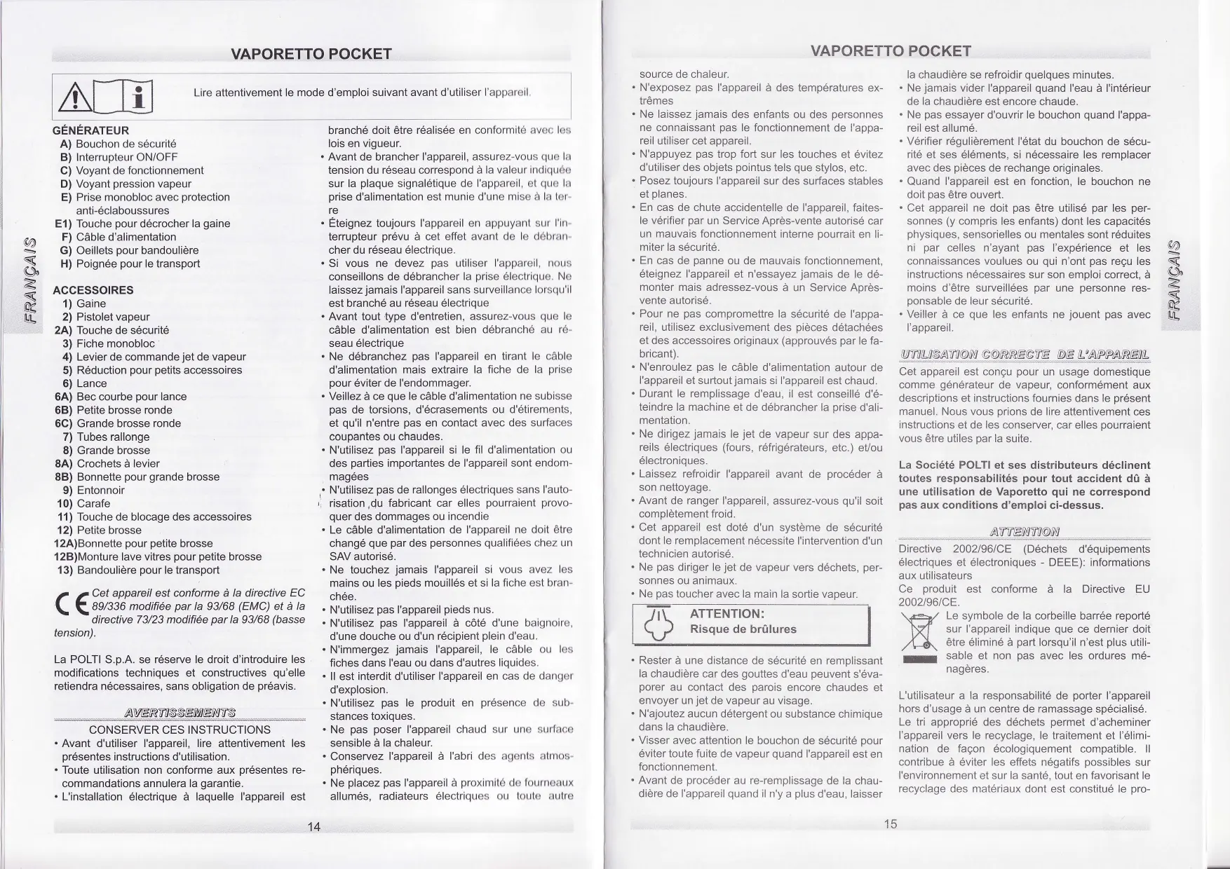 MODE D'EMPLOI VAPORETTO POCKET POLTI