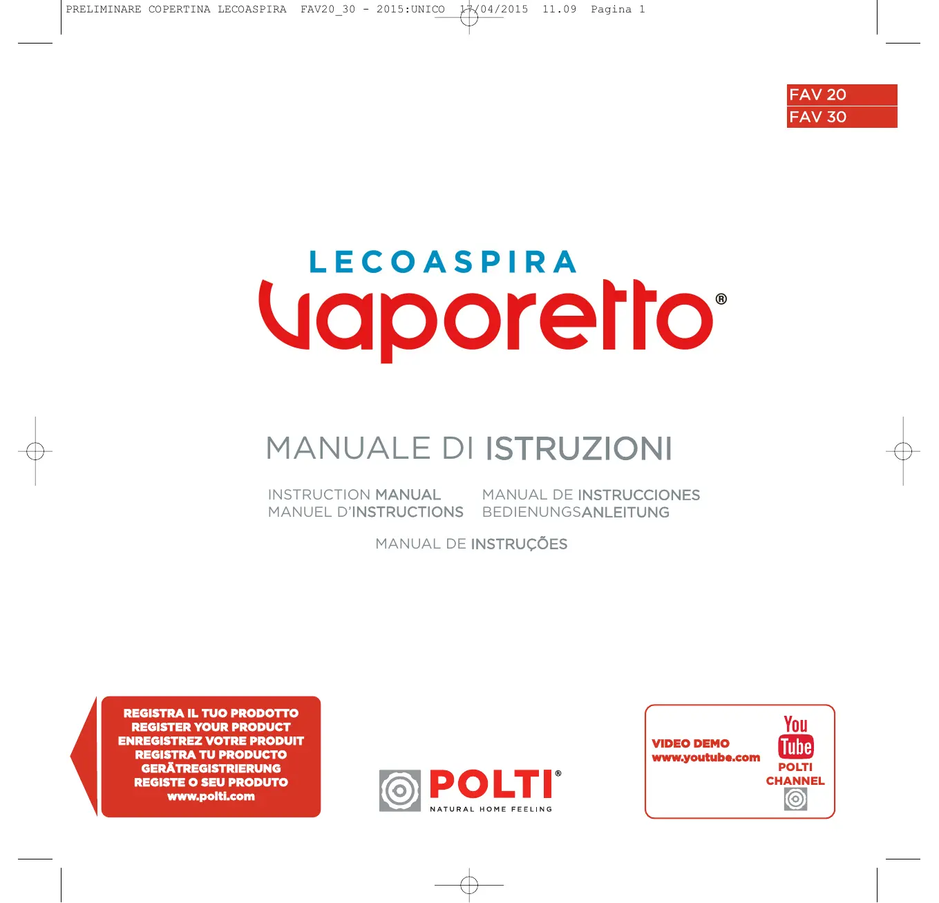Retrouvez gratuitement la notice de l'appareil FAV 30 LECOASPIRA POLTI au format PDF.