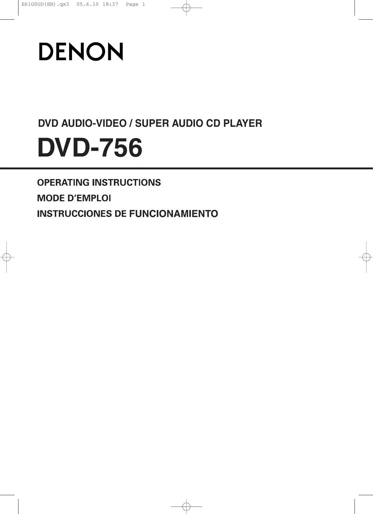 Retrouvez gratuitement la notice de l'appareil DVD-756 DENON au format PDF.