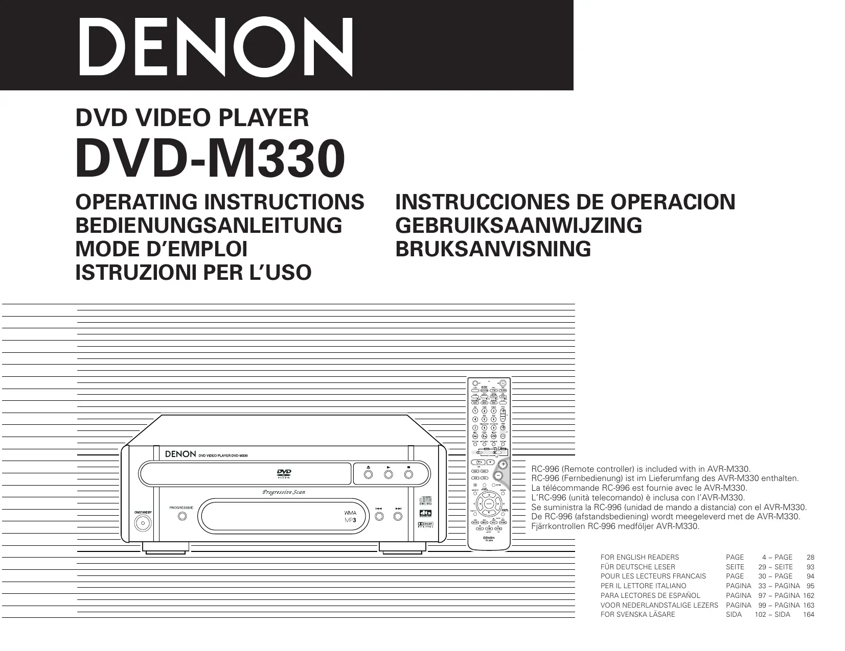 Retrouvez gratuitement la notice de l'appareil DVD-M330 DENON au format PDF.