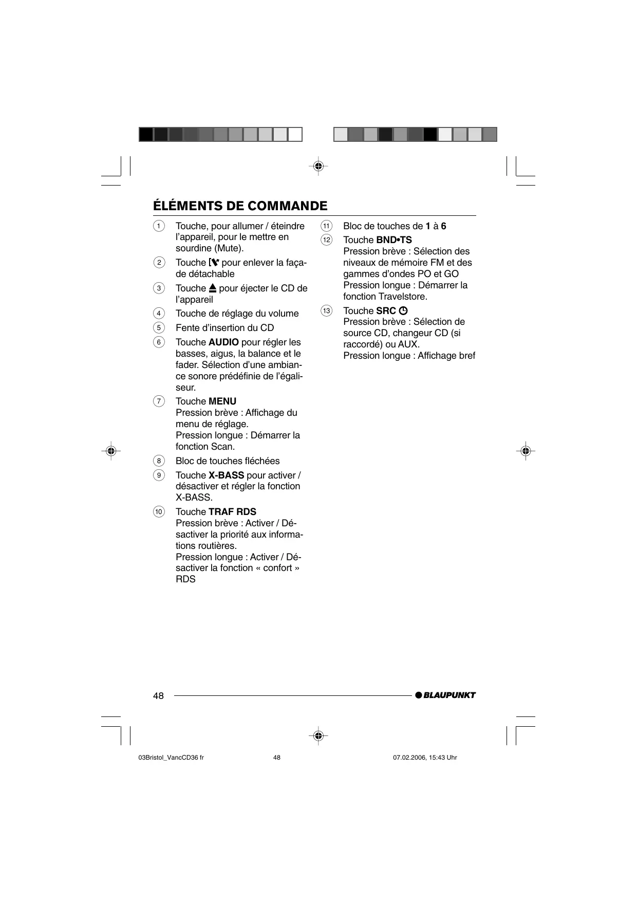 MODE D'EMPLOI VANCOUVER CD36 BLAUPUNKT