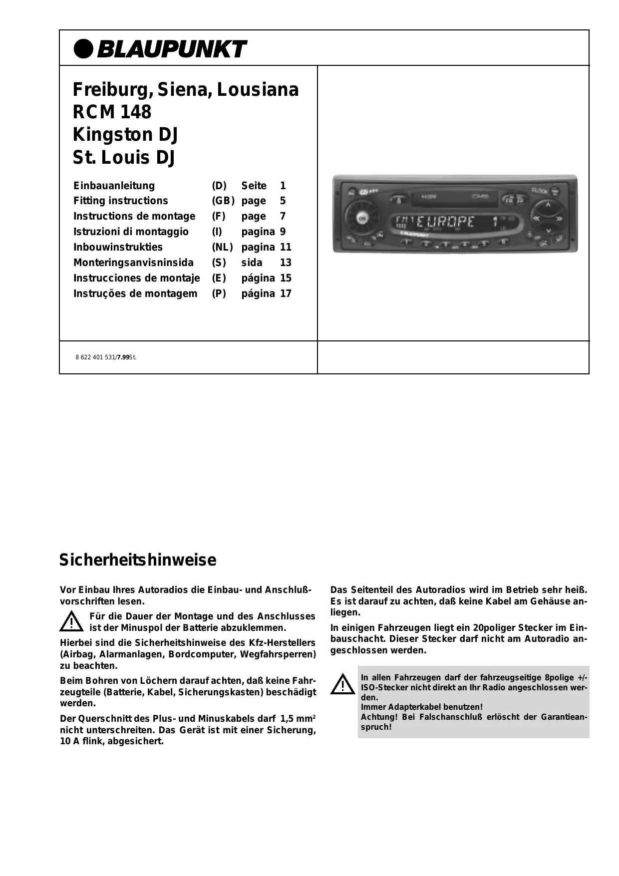 FREIBURG RCM 148 - Autoradio BLAUPUNKT - Notice d'utilisation et mode d'emploi gratuit
