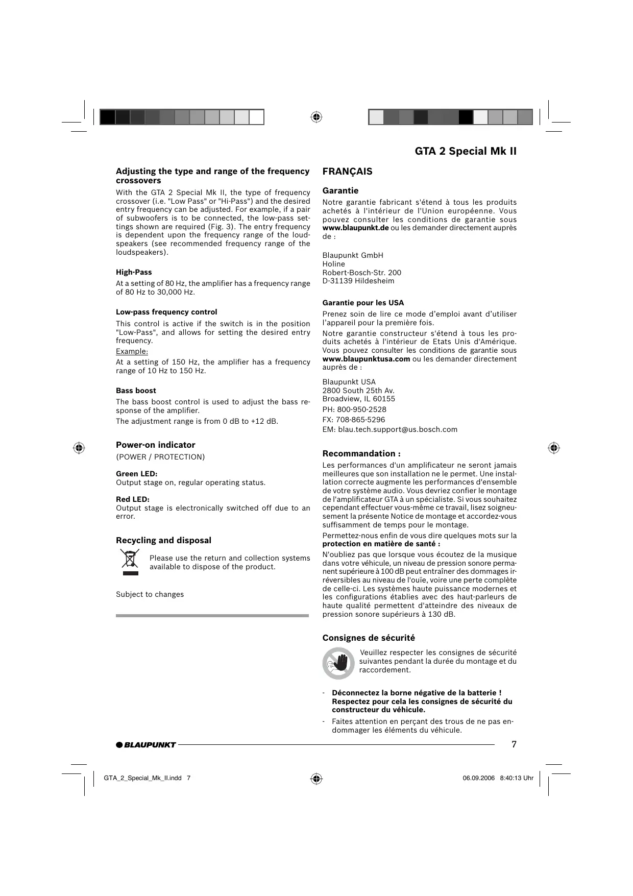 GTA 2 SPECIAL MK II - Amplificateur audio BLAUPUNKT - Notice d'utilisation et mode d'emploi gratuit