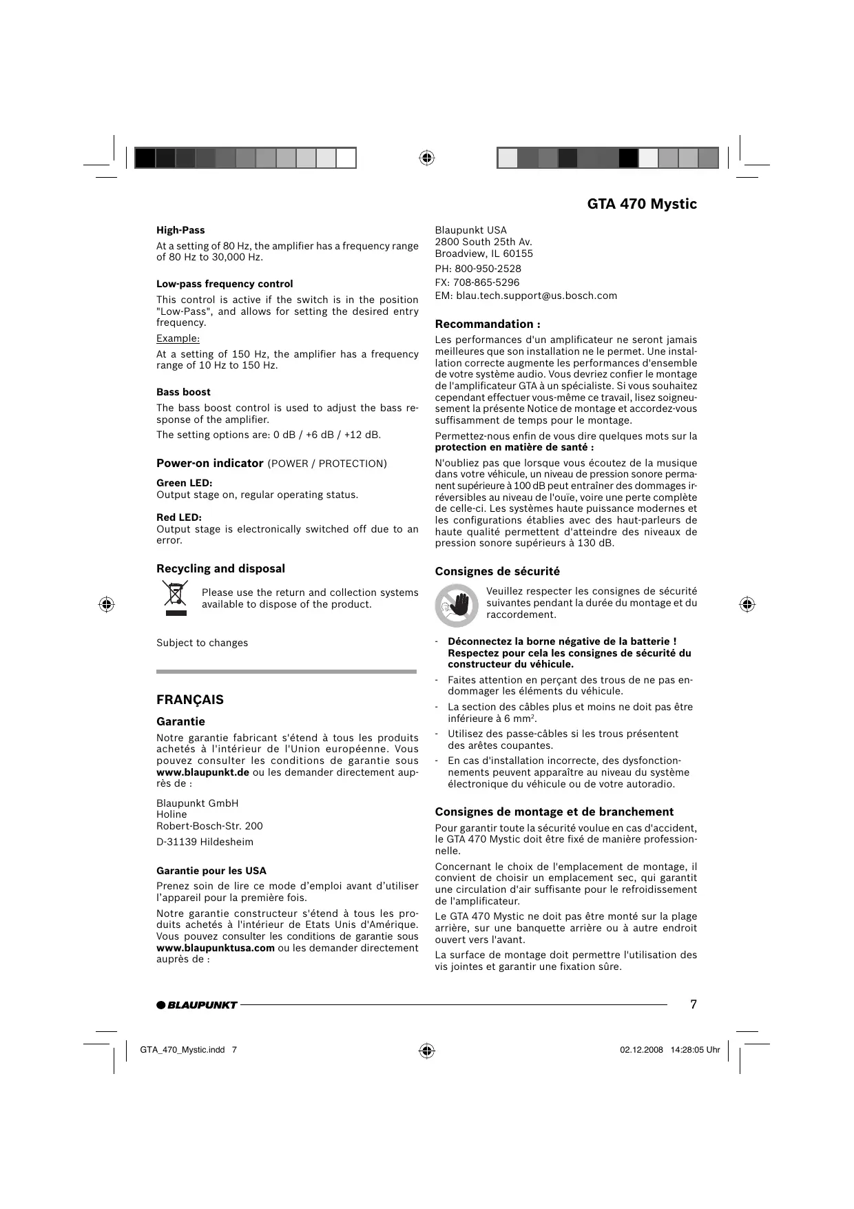 GTA 470 MYSTIC SERIES - Amplificateur de voiture BLAUPUNKT - Notice d'utilisation et mode d'emploi gratuit