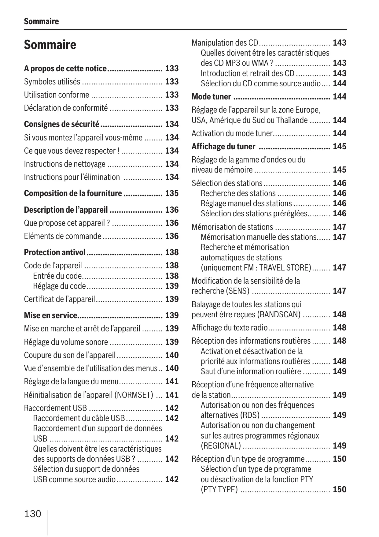 - Utilisation conforme p. 133