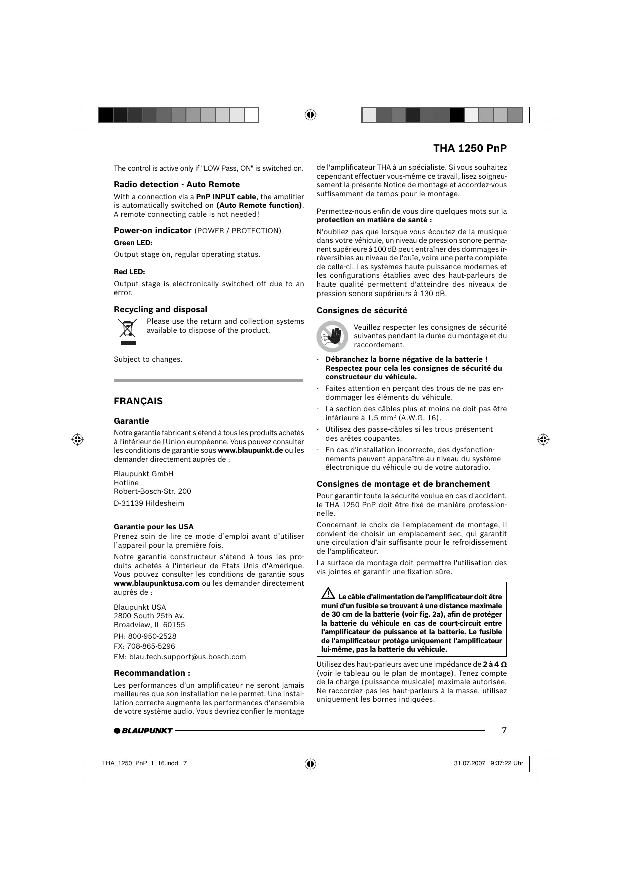 THA 1250 PNP - Amplificateur de voiture BLAUPUNKT - Notice d'utilisation et mode d'emploi gratuit