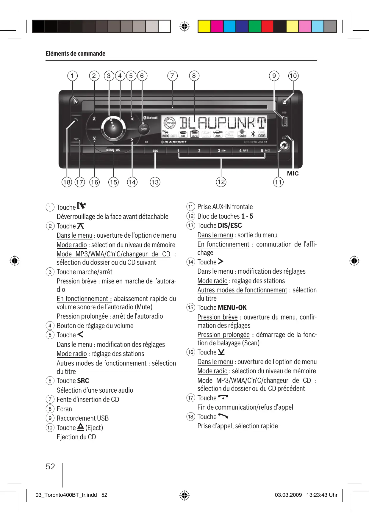 MODE D'EMPLOI TORONTO BT400 BLAUPUNKT