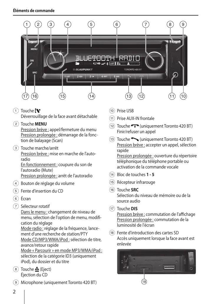 TORONTO 420 BT - Autoradio BLAUPUNKT - Notice d'utilisation et mode d'emploi gratuit