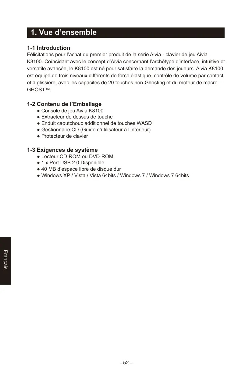 Félicitations pour l’achat du premier produit de la série Aivia - clavier de jeu Aivia