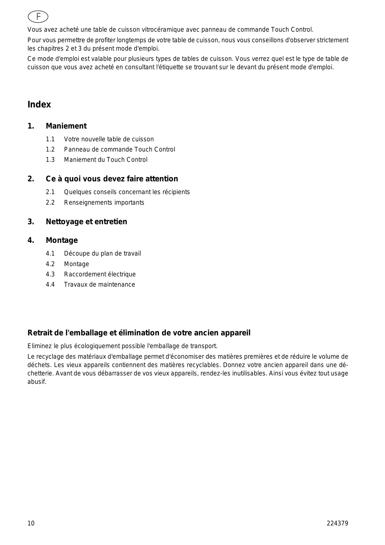 Pour vous permettre de profiter longtemps de votre table de cuisson, nous vous conseillons d'observer strictement les chapitres 2 et 3 du présent mode d'emploi. Ce mode d'emploi est valable pour plusieurs types de tables de cuisson. Vous verrez quel est le type de table de cuisson que vous avez acheté en consultant l'étiquette se trouvant sur le devant du présent mode d'emploi.