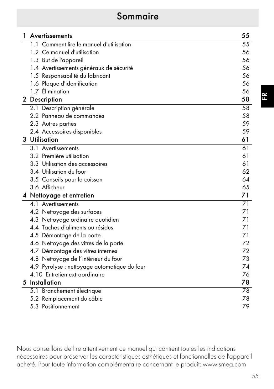 Nous conseillons de lire attentivement ce manuel qui contient toutes les indications nécessaires pour préserver les caractéristiques esthétiques et fonctionnelles de l'appareil acheté. Pour toute information complémentaire concernant le produit: www.smeg.com