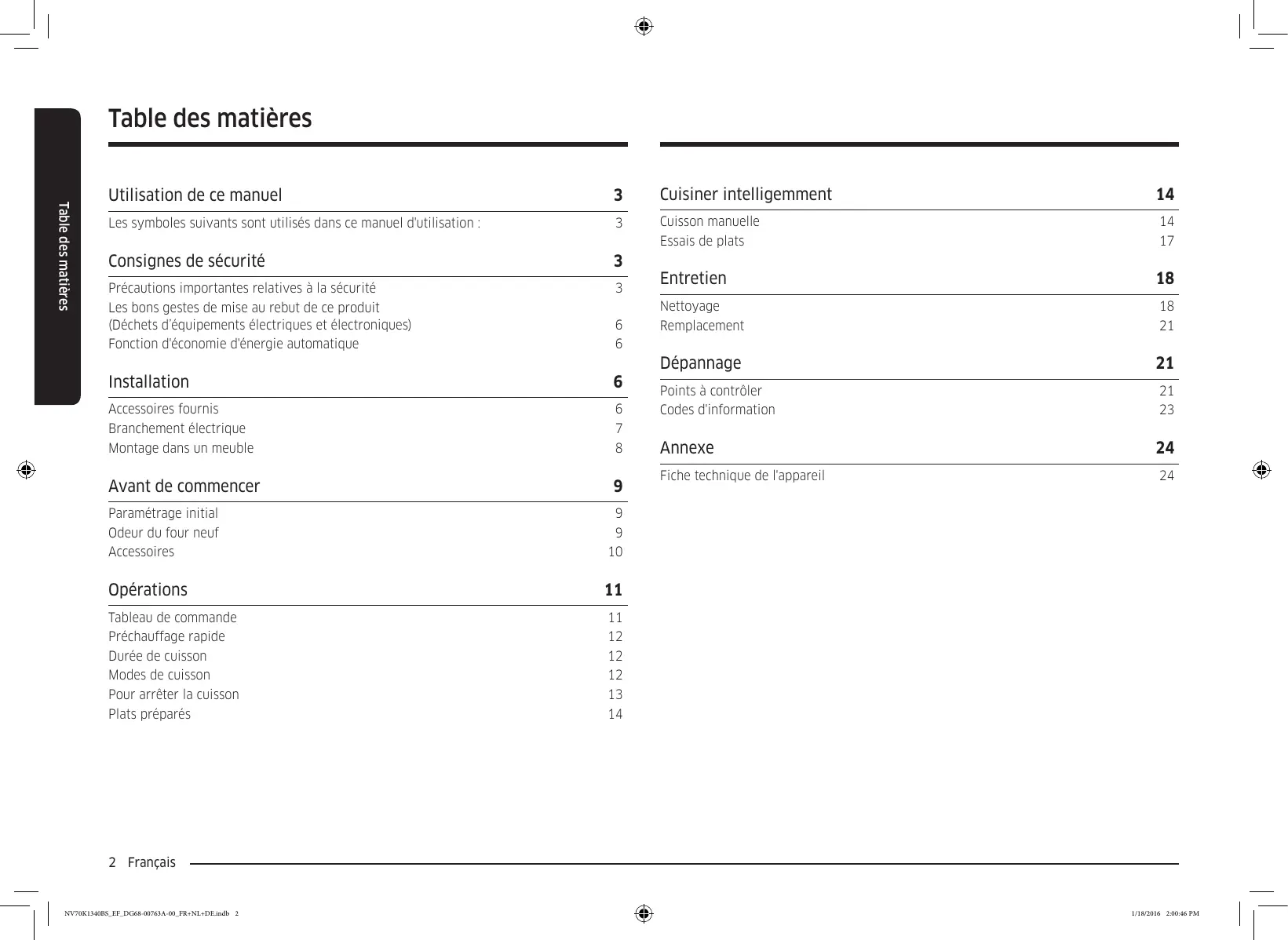 - Vérifiez s'il est sous tension. Français 21 NV70K1340BS_EF_DG68-00763A-00_FR+NL+DE.indb 21 1/18/2016 2:00:55 PM Dépannage L'heure n'est pas affichée. Le four ne fonctionne • En cas de coupure de courant pas. Le four s'arrête