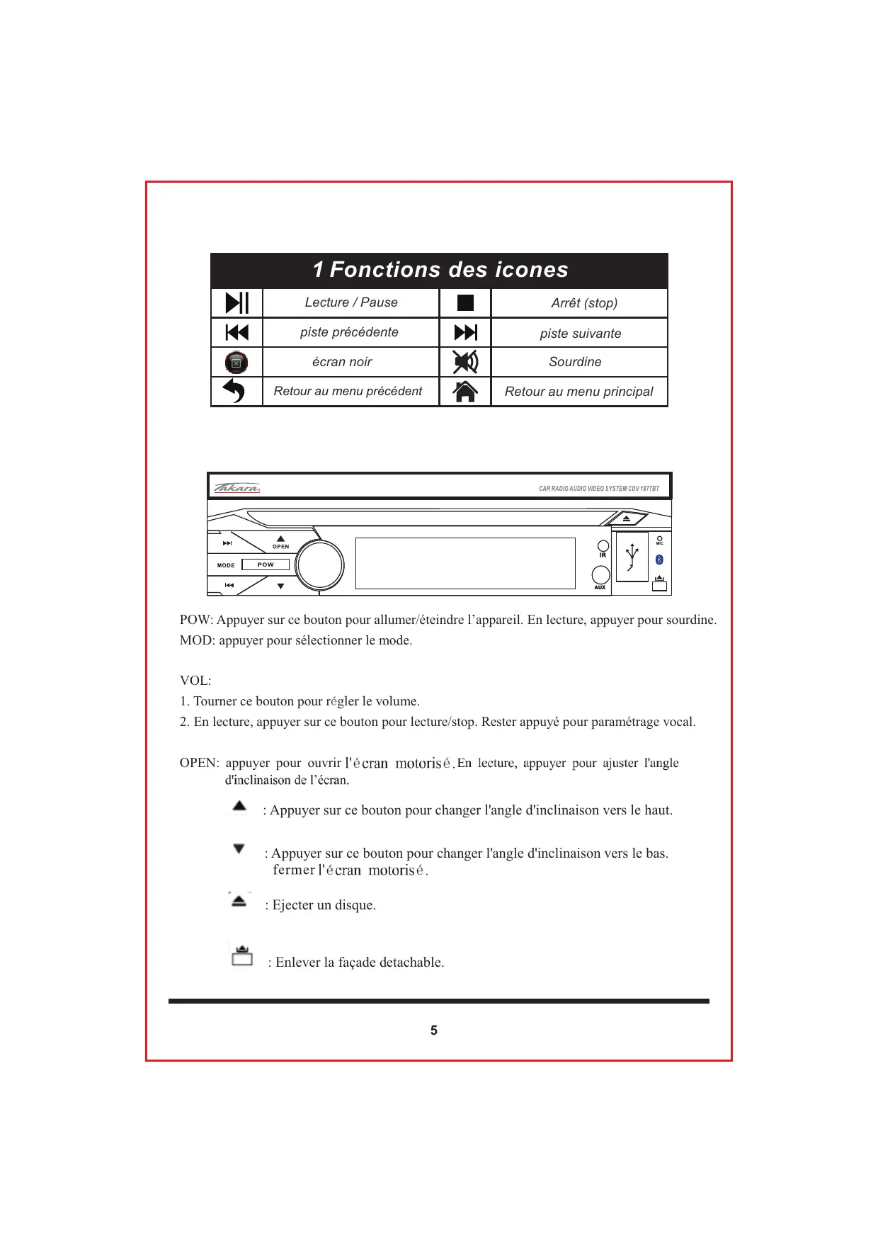 CDD1887BT - Autoradio multimédia TAKARA - Notice d'utilisation et mode d'emploi gratuit
