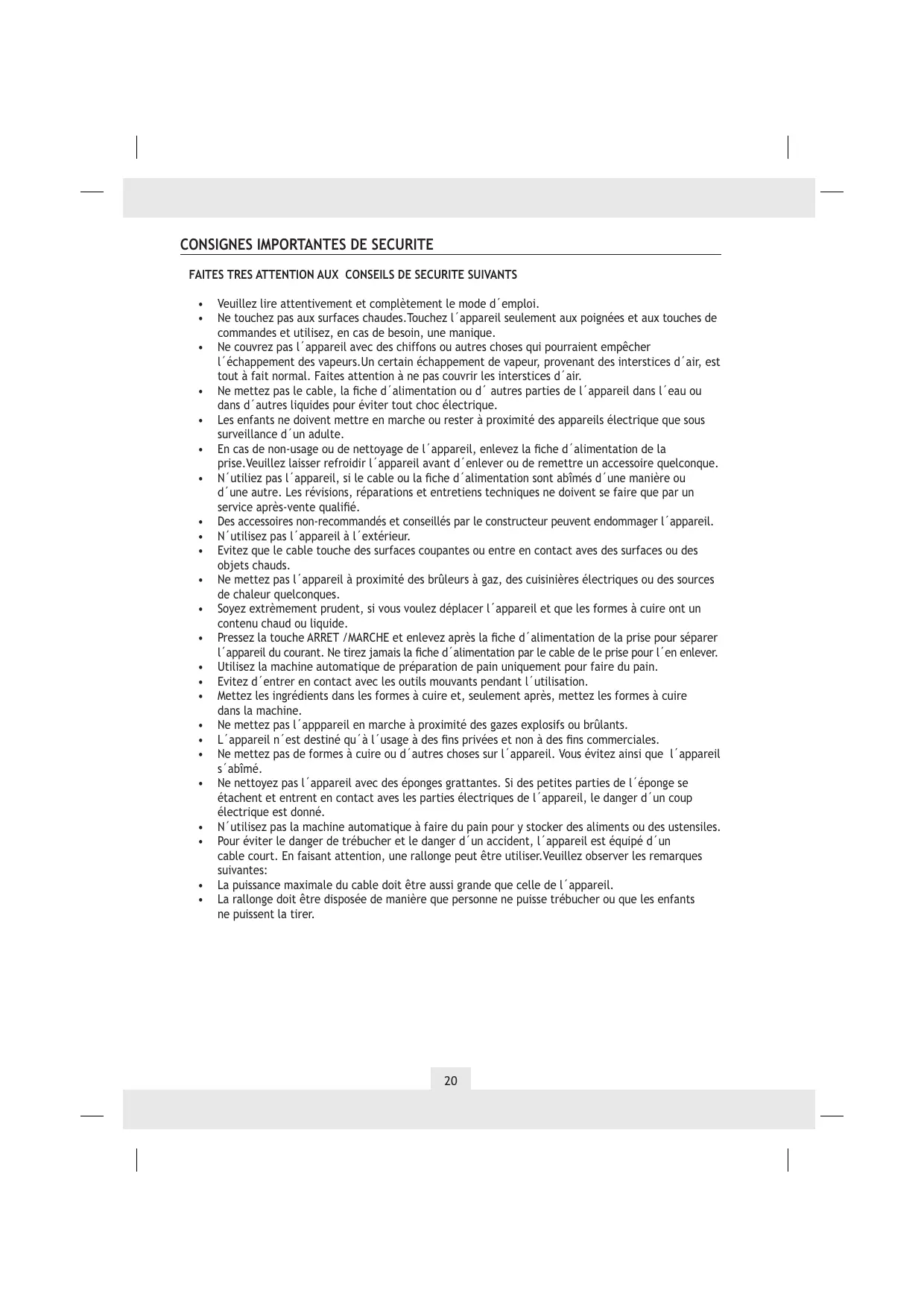Pour assurer le transport sur de votre nouvel apparéil à faire cuire du pain, l' apparéil est pourvu de disposits de sécurité pour le transport qui doivent être enlevés avant la première utilisation.