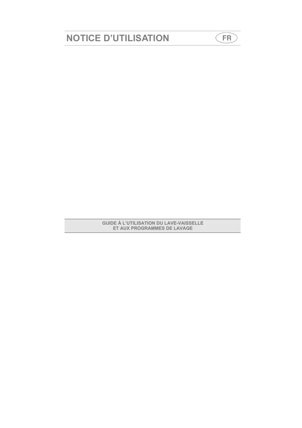 INSTRUCTIONS POUR L’UTILISATEUR: des conseils utiles sont donnés sur les programmes de lavage et toutes les fonctions du lavevaisselle.